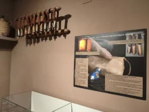 En este inmueble de la calle de Sixto Ramón Parro comenzaron a desarrollar de manera artesanal un espacio que ya es un referente en la divulgación de la cultura gastronómica de Castilla-La Mancha. Teresa diseñó los primeros murales de las salas del museo con cartulinas y fotografías, a la vez que recorrían pueblos de la región en busca de utensilios tradicionales, como mesas de desuerado de Cuenca o tarros de ordeño antiguos, para dotar al local de alma y autenticidad.