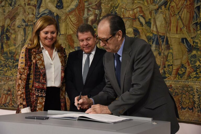 Esta cesión se ha rubricado en un contrato de comodato que el artista ha sellado con el presidente regional, Emiliano García-Page, y la consejera de Educación Cultura y Deportes, Ana Rosa Rodríguez, en un acto que se ha llevado a cabo en el Palacio de Fuensalida.