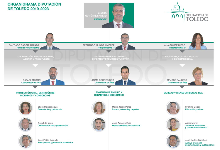 Apenas cinco días después de tomar posesión como presidente de la Diputación de Toledo, Álvaro Gutiérrez ha presentado el organigrama de su nuevo Gobierno provincial para los próximos cuatro años, en los que dará continuidad al trabajo desempeñado en la anterior legislatura, aunque en esta ocasión con mayoría absoluta.