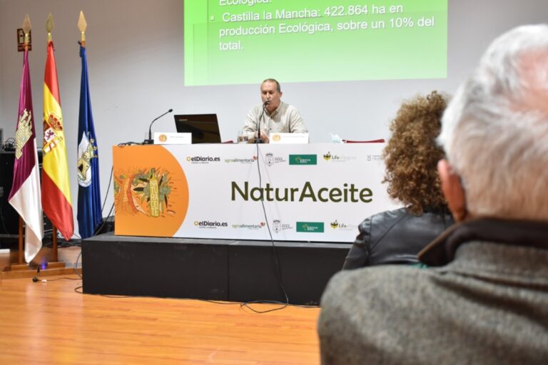 “El olivar tradicional ecológico a día de hoy es más rentable y mucho más estable en producción que uno convencional”. Esta es una de las afirmaciones que ha hecho el experto en olivar ecológico, Vicente Rodríguez Niño, en su ponencia 'El cultivo de olivar ecológico: un referente para frenar el cambio climático' de la Jornada Naturaceite 2022, que se ha celebrado en Mora este miércoles, 6 de abril, organizadas por Eldiario.es de Castilla-La Mancha, el Ayuntamiento de la localidad y con la colaboración de Eurocaja Rural.