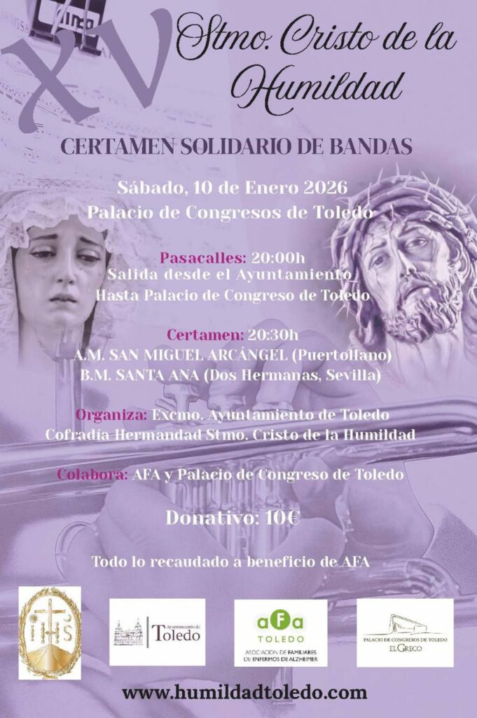El auditorio del Palacio de Congresos 'El Greco' acoge este próximo sábado, 10 de enero a las 20.30 horas, el XV Certamen Solidario de bandas de música, a beneficio de la Asociación de Familiares de Enfermos de Alzheimer de Toledo (AFA).
