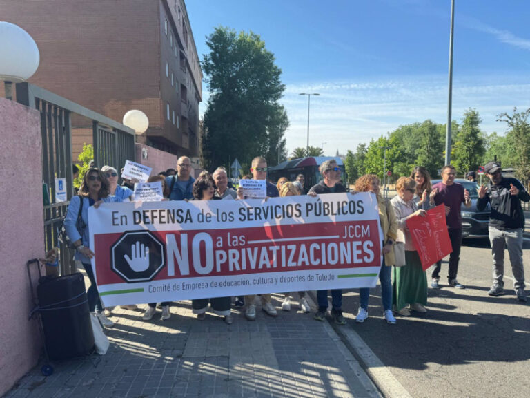 En el caso de Toledo, la concentración ha tenido lugar en la Delegación Provincial de Educación, Cultura y Deportes, donde los allí congregados han gritado lemas como 'Menos asesores y más trabajadores', 'Sin limpieza no hay educación', 'El personal laboral no se vende', 'Page, escucha, estamos en la lucha' o 'Más inversión para educación'.