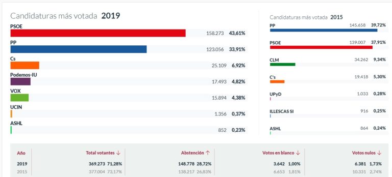 Ugena: PSOE 8, PP 2, Vox 1, IU-Vecinos x Ugena 1, Ciudadanos 1,