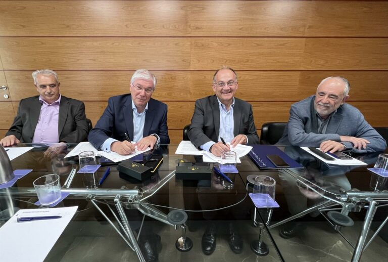 El presidente de la Autoridad Portuaria de València (APV), Joan Calabuig, y el alcalde de Illescas, José Manuel Tofiño, han firmado un protocolo de promoción conjunta de la futura terminal ferroviaria de mercancías de la Plataforma Central Iberum multimodal.