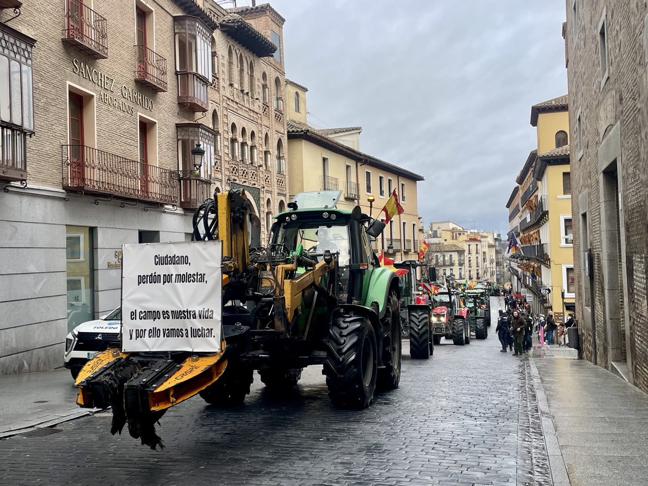 Al inicio de las protestas, y también después en el escenario que se ha instalado en la plaza de Zocodover, se han pronunciado los principales responsables de las organizaciones agrarias convocantes de la protesta. El presidente de ASAJA Castilla-La Mancha, José María Fresneda, ha trasladado que "el campo no va soportar más" y que el sector no va tolerar "más mentiras, ni con Mercosur, ni con la PAC, ni con los conejos".