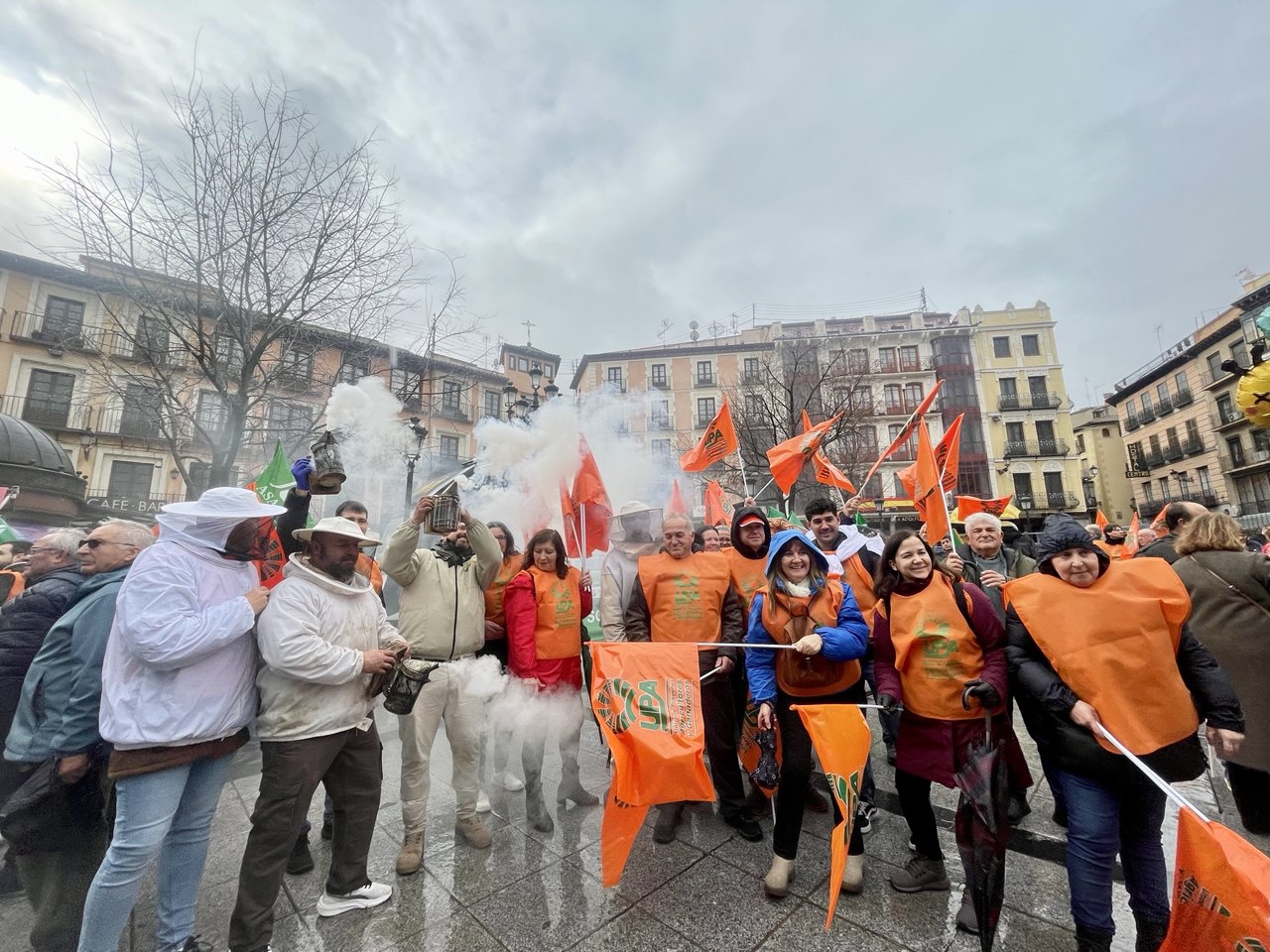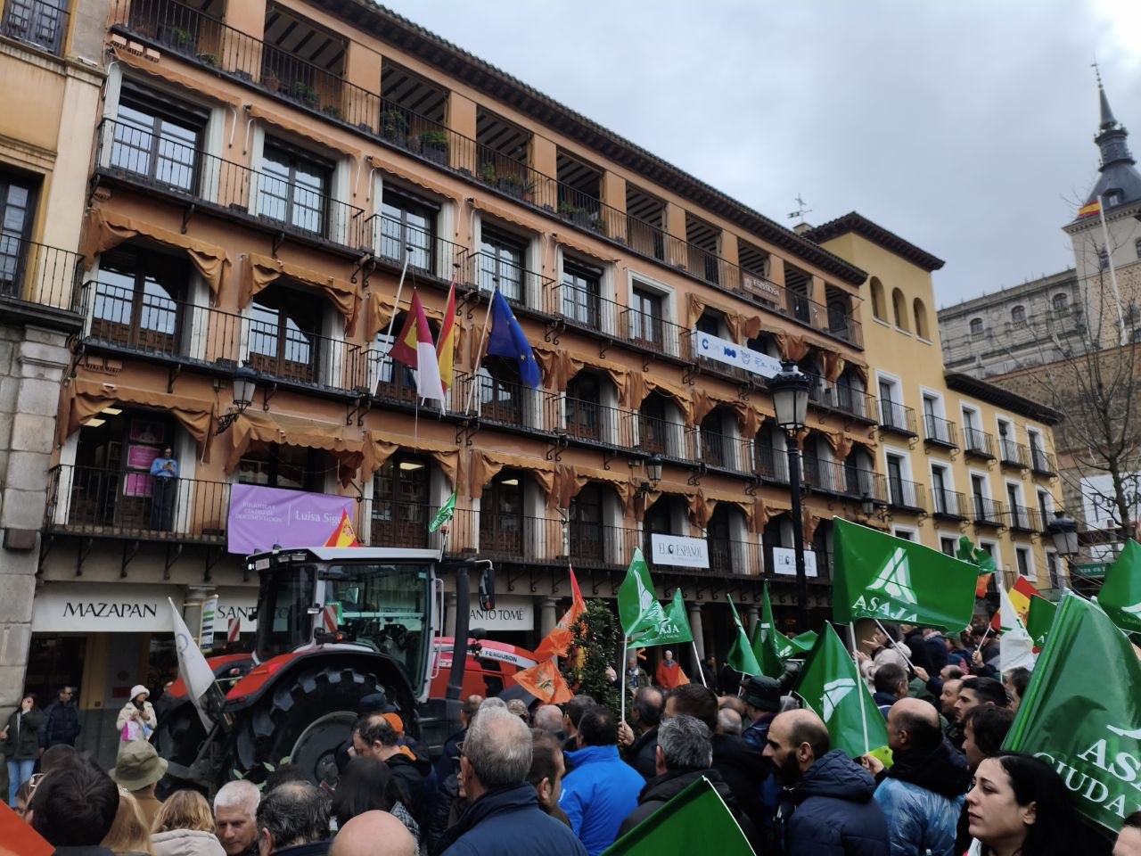 Al inicio de las protestas, y también después en el escenario que se ha instalado en la plaza de Zocodover, se han pronunciado los principales responsables de las organizaciones agrarias convocantes de la protesta. El presidente de ASAJA Castilla-La Mancha, José María Fresneda, ha trasladado que "el campo no va soportar más" y que el sector no va tolerar "más mentiras, ni con Mercosur, ni con la PAC, ni con los conejos".