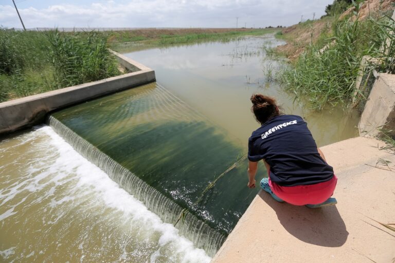 Ante este contexto, Greenpeace propone: el trasvase cero desde el río Tajo, eliminar las hectáreas de regadíos sin derecho a agua, como es la cota 120 que no es zona regable, y reducir los regadíos intensivos e industriales; y controlar pozos y desalobradoras en manos de los pequeños agricultores cuando esté construido y operativo el sistema de depuración de agua para que los puedan usar en sustitución del trasvase.