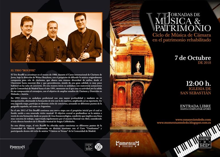 El Consorcio de Toledo iniciará este domingo, 7 de octubre, a las 12.00 horas, su VII Ciclo de Música y Patrimonio en la iglesia de San Sebastián. Se trata de seis conciertos organizados por el Consorcio, en colaboración con la asociación musical Momentum Toledo, que tendrán lugar hasta el día 16 de diciembre.