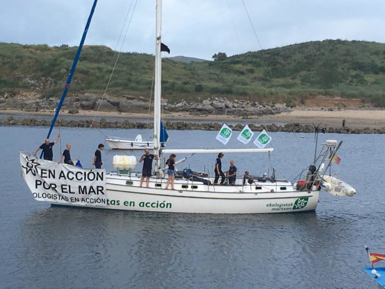 Clara Megías nos explica que los principales problemas ambientales del norte de España se centran en las rías, los vertidos o la acumulación de basuras en zonas naturales. “Aprovechamos el velero para denunciarlos.” En el caso de Asturias, Ecologistas en Acción puso en marcha su iniciativa “Banderas Negras”.