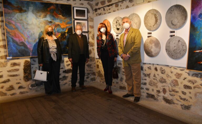 La vicepresidenta de Educación, Cultura, Igualdad y Bienestar Social de la Diputación de Toledo, Ana Gómez, ha compartido con Moisés Rojas la apertura de una muestra "diferente", con obras seleccionadas por el autor a partir de las observaciones realizadas a título particular y con la Agrupación Astronómica Madrid Sur en este espacio visigodo privilegiado de la provincia de Toledo.
