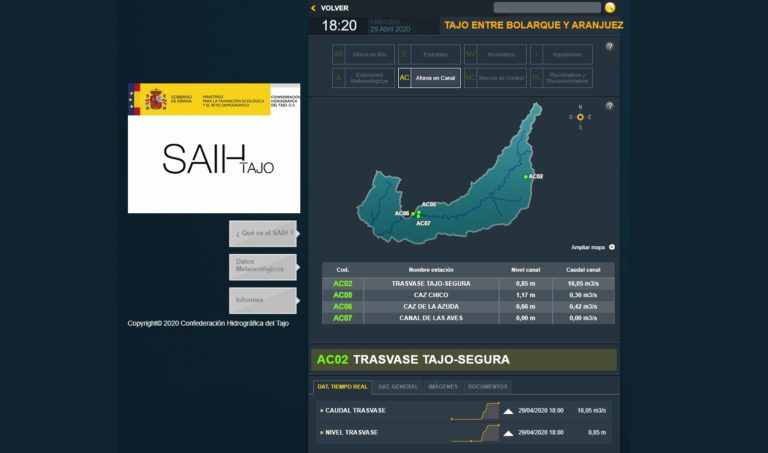 Sin embargo, tras esta última noticia, de la que informaba la Dirección General del Agua del Ministerio para la Transición Ecológica y el Reto Demográfico a la Comisión Central de Explotación del Acueducto Tajo-Segura (ATS), a través de la página web del Sistema Automático de Información Hidrológica (SAIH) se puede comprobar como el trasvase no se ha suspendido todavía y ha comenzado a circular el agua por el canal del trasvase a una velocidad de 16 metros cúbicos por segundo (m3/s).