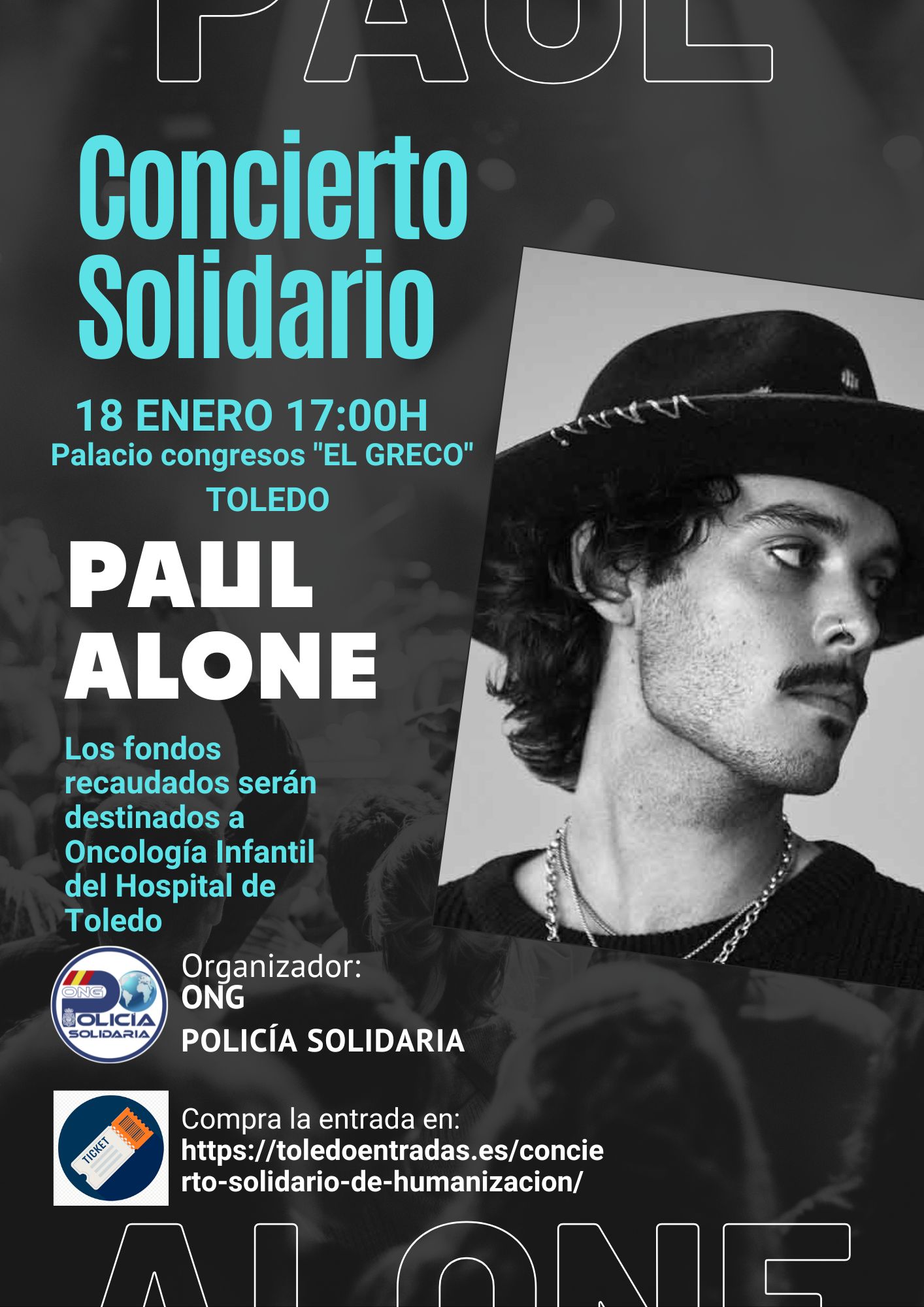 Policía Solidaria para ello contará con Paul Alone, cantautor nacido en Pamplona, un artista inquieto, creativo y curioso por naturaleza. Vive con intensidad, ama la vida y eso se nota en cada nota, en cada verso. Su música respira belleza, emoción, romanticismo y una mirada única cargada de experiencias reales.