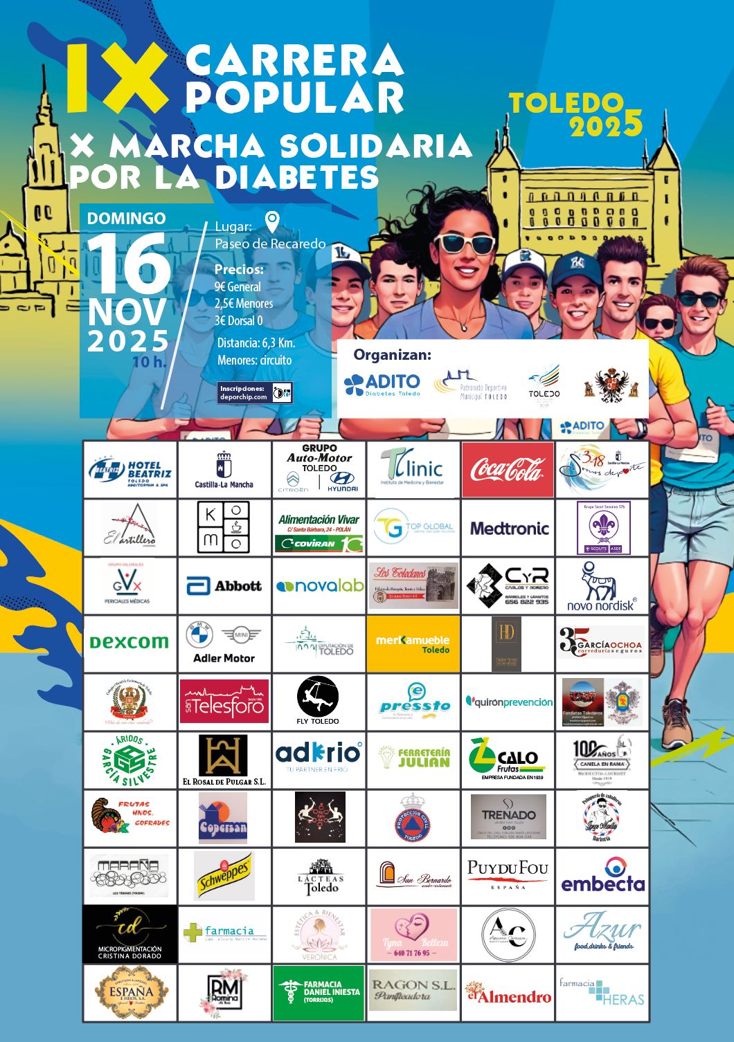 Localización Paseo de Recaredo Categoría Carrera solidaria Más Información Leer más ir a la agenda Noticias Cultura Fecha domingo 16 Nov 2025 Finalizado! Hora 10:00 IX Carrera Popular y X Marcha Solidaria por la Diabetes Toledo acoge un intenso fin de semana deportivo con gimnasia rítmica y la IX Carrera y X Marcha por la diabetes Compartir este evento + Añadir Google Calendar Exportación + iCal / Outlook El evento está terminado.