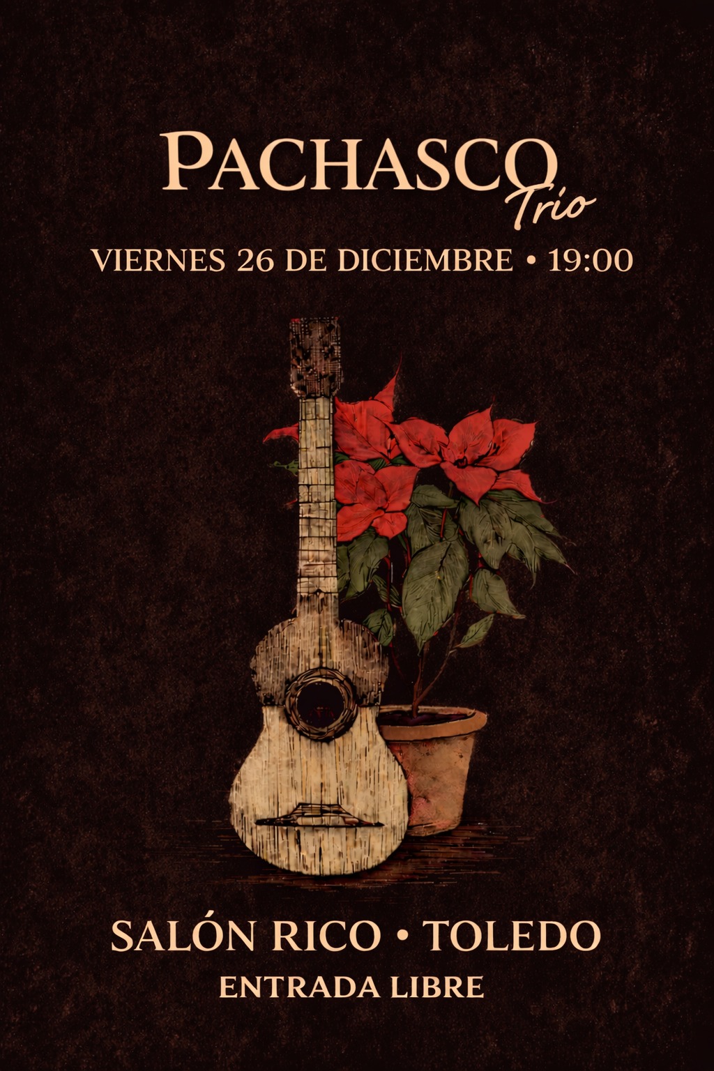 Localización Salón Rico Categoría ArtesaníaBaileConcierto ir a la agenda Noticias Cultura Fecha viernes 26 Dic 2025 Finalizado! Hora 19:00 - 21:00 Pachasco Compartir este evento + Añadir Google Calendar Exportación + iCal / Outlook El evento está terminado. Etiquetas: pachasco, salón rico