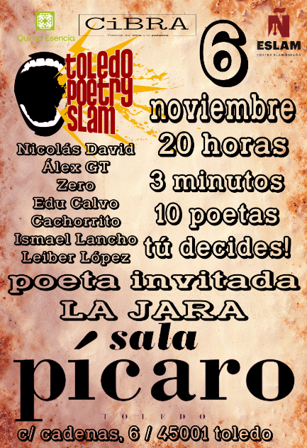 Localización Sala Pícaro C. Cadenas, 6, 45001 Toledo Web https://sala.picarotoledo.com/ Café de tarde con sesiones de DJ y conciertos nocturnos en un local con distintas alturas y estilo industrial. Categoría Poesía ir a la agenda Noticias Cultura Fecha jueves 06 Nov 2025 Finalizado! Hora 20:00 Poetry Slam Toledo recibe a La Jara, campeona de Valencia Compartir este evento + Añadir Google Calendar Exportación + iCal / Outlook El evento está terminado.