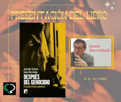 Localización Biblioteca de Castilla-La Mancha Cuesta Carlos V, 4, 45001 Toledo, España Categoría Presentación Más Información Leer más ir a la agenda Noticias Cultura Fecha martes 30 Sep 2025 Finalizado! Hora 19:30 - 21:00 Coste Gratuito Presentación del libro 'Después del genocidio: el incierto futuro palestino' Compartir este evento + Añadir Google Calendar Exportación + iCal / Outlook El evento está terminado.