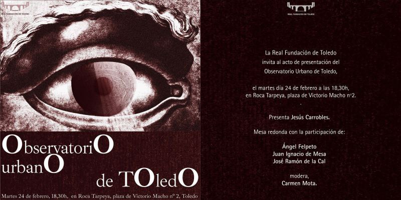 El próximo martes 24 de febrero a las 18.30 horas se celebrará en en la sala de actos de Roca Tarpeya el acto de presentación del Observatorio Urbano de Toledo a cargo de Jesús Carrobles, presidente de la Real Fundación de Toledo. A continuación tendrá lugar la primera mesa redonda del Observatorio, en la que participarán Ángel Felpeto, Juan Ignacio de Mesa y José Ramón González de la Cal, moderados por Carmen Mota.