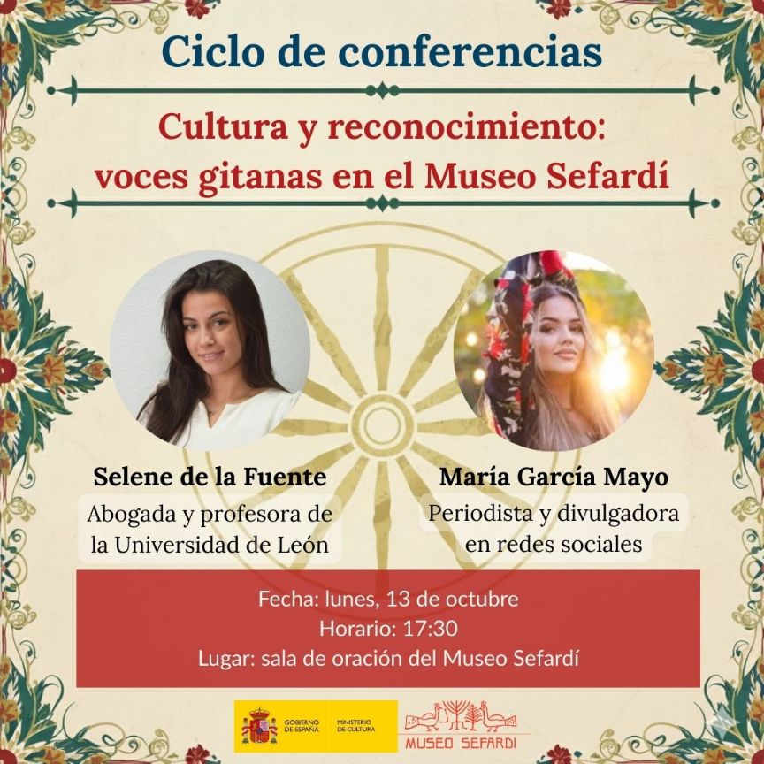 El Museo organiza el ciclo de conferencias “Cultura y reconocimiento: voces gitanas en el Museo Sefardí”, que busca visibilizar y poner en valor la contribución cultural del pueblo gitano en España. Esta programación se inserta dentro de un proyecto de la Subdirección General de Museos Estatales que busca dar voz a diversos colectivos minoritarios, en el que participan también otros museos de la red como el Museo Cerralbo o el Museo Nacional de Artes Decorativas.