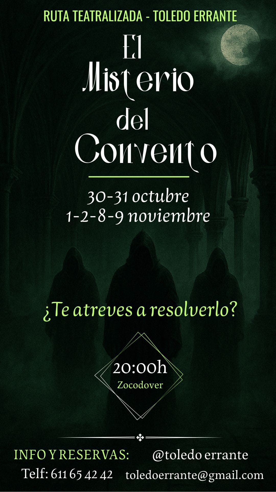 Localización Plaza de Zocodover Categoría Ruta ir a la agenda Noticias Cultura Fecha domingo 09 Nov 2025 Finalizado! Hora 20:00 Ruta teatralizada 'El misterio del convento' Compartir este evento + Añadir Google Calendar Exportación + iCal / Outlook El evento está terminado.