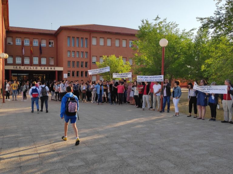Así lo ha denunciado la Asociación de Profesionales Julio Verne, que este pasado jueves convocó una concentración ante las puertas del centro educativo para protestar ante la Admininstración educativa "los problemas de masificación" y exigir la puesta en marcha de infraestructuras que permitan acoger a un alumnado que "casi duplica" ya los niveles de ocupación óptimos para la convivencia y el trabajo docente y del alumnado.