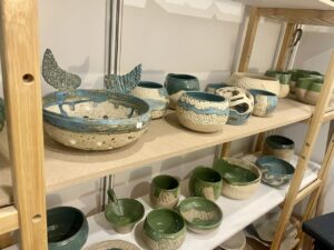 A esta fiesta se han unido Elena y Ángela. Sus piezas de cerámica y porcelana, grés y esmaltes de alta y de baja temperatura ven la luz por primera vez en esta feria de artesanía. Se han "liado la manta a la cabeza" y han traído sus piezas desde el pueblo vecino de Illescas.