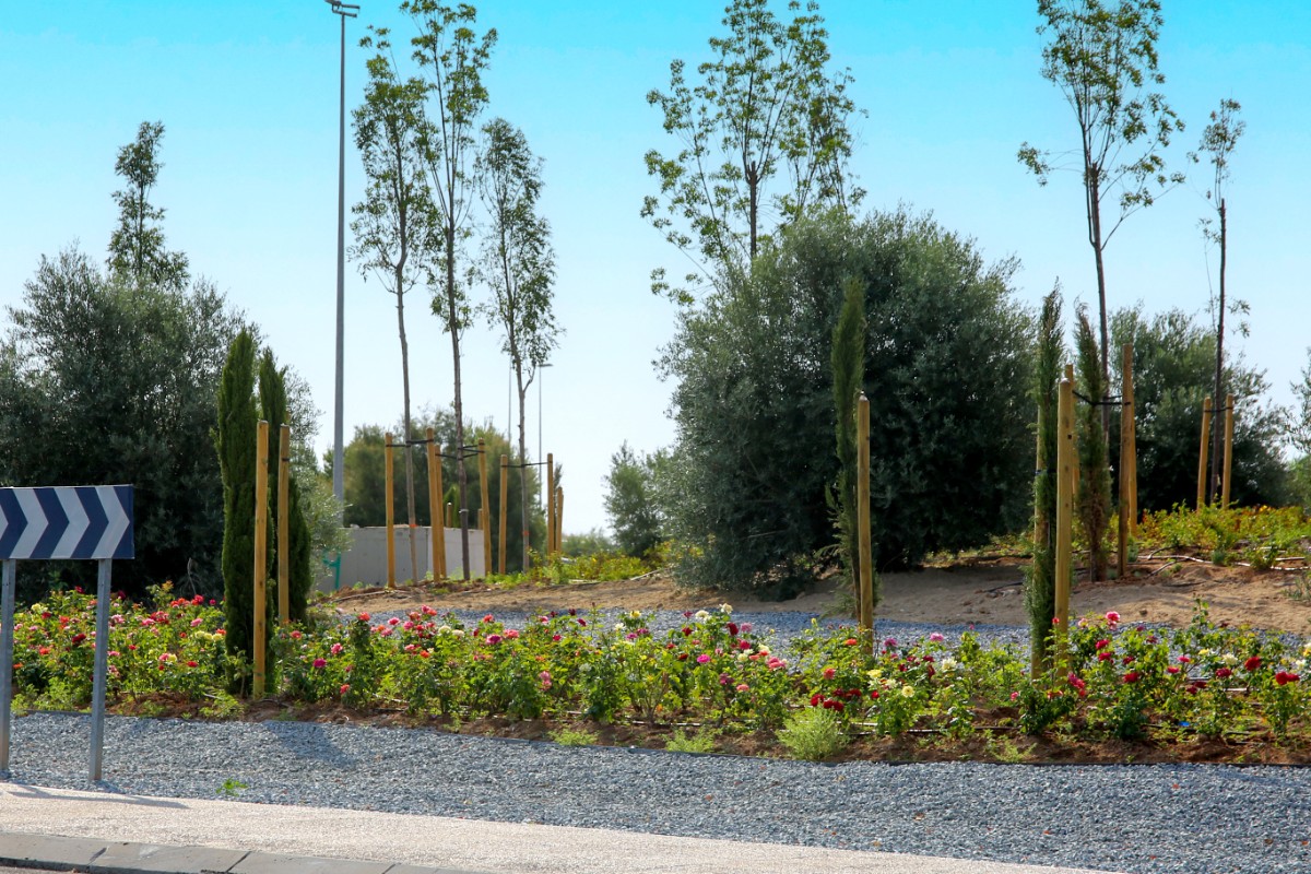 También se han incorporado sistemas de drenaje, como colectores, sumideros y bajantes, aceras, voladizos sobre la calzada del vial de conexión entre glorietas, señalización e iluminación con lámparas tipo led tanto en el nuevo carril bici y peatonal como en la glorieta del Salto del Caballo.
