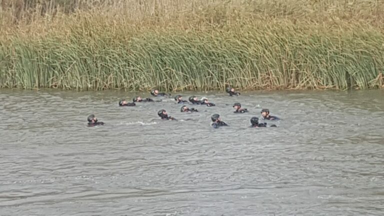 Es curiosa la imagen ya que el baño en el río Tajo está prohibido desde el año 1972 por la contaminación de sus aguas, pero el alumnado de la UME se forma en prácticas de rescate en este y otros ambientes durante cuatro semanas.