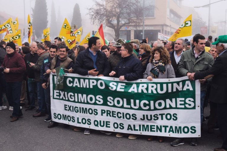 Unas cinco mil personas se han manifestado este martes en Toledo reivindicando mejoras en las condiciones laborales del sector agrícola y ganadero. Los altos costes en la producción y los bajos precios por las materias primas son las principales quejas de un sector en el que las más perjudicadas son las mujeres.