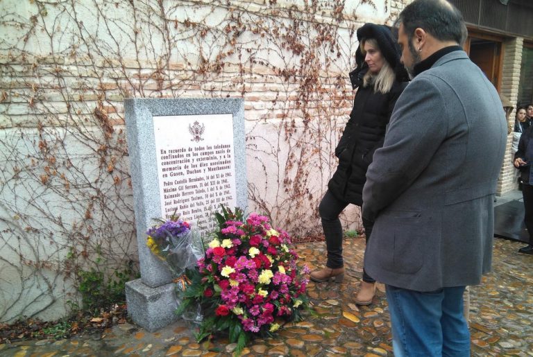 Además de las intervenciones por parte de los portavoces, se ha hecho una ofrenda floral al monolito que se hizo para recordar a los toledanos que fueron deportados a los campos nazis. En la pieza de homenaje están representados los nombres de los toledanos, “pero es un símbolo no solo para ellos sino de toda la provincia y españoles que pasaron por los campos de concentración”, ha explicado el coordinador provincial de Izquierda Unida, Mario García.