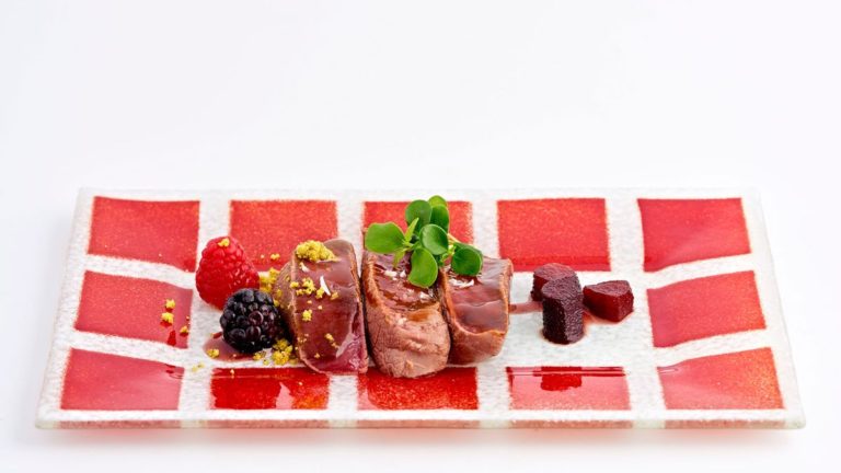 También careta de cerdo con salsa brava suave y carabineros; lomo de bacalao con pil-pil de codium; paletilla de cordero al estilo moruno; remolacha con café y frambuesas y tubo de té con chocolate blanco con helado de mango.
