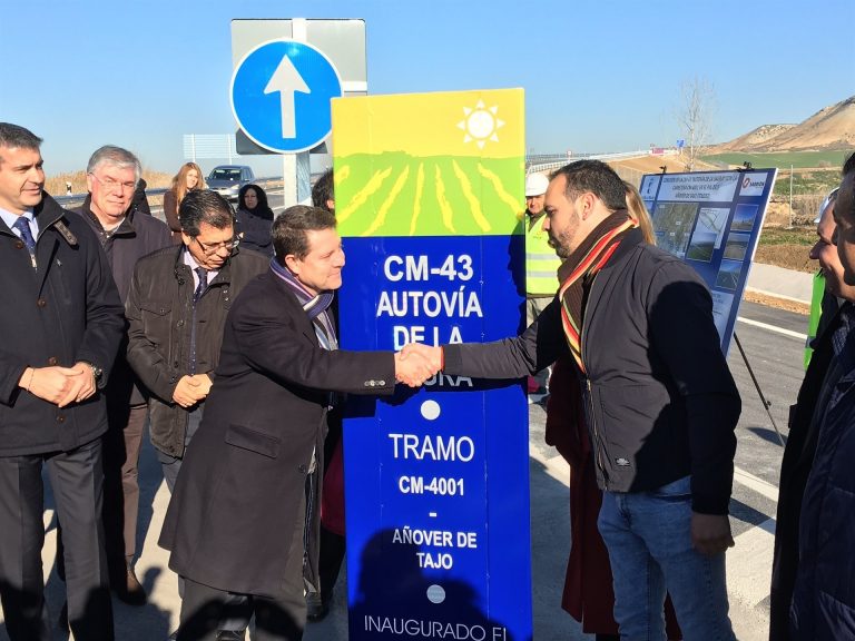 El presidente de Castilla-La Mancha, Emiliano García-Page, ha inaugurado este lunes el tramo final del ramal sur de la Autovía de la Sagra, un trayecto de apenas 900 metros que posibilita que entre en servicio otro tramo anterior de cerca de dos kilómetros y terminar así la ruta, que posibilita que la conexión de 55 kilómetros entre la autovía A-5 a la altura de Valmojado hasta la A-4 en el entorno de Añover de Tajo se pueda completar en apenas 35 minutos.
