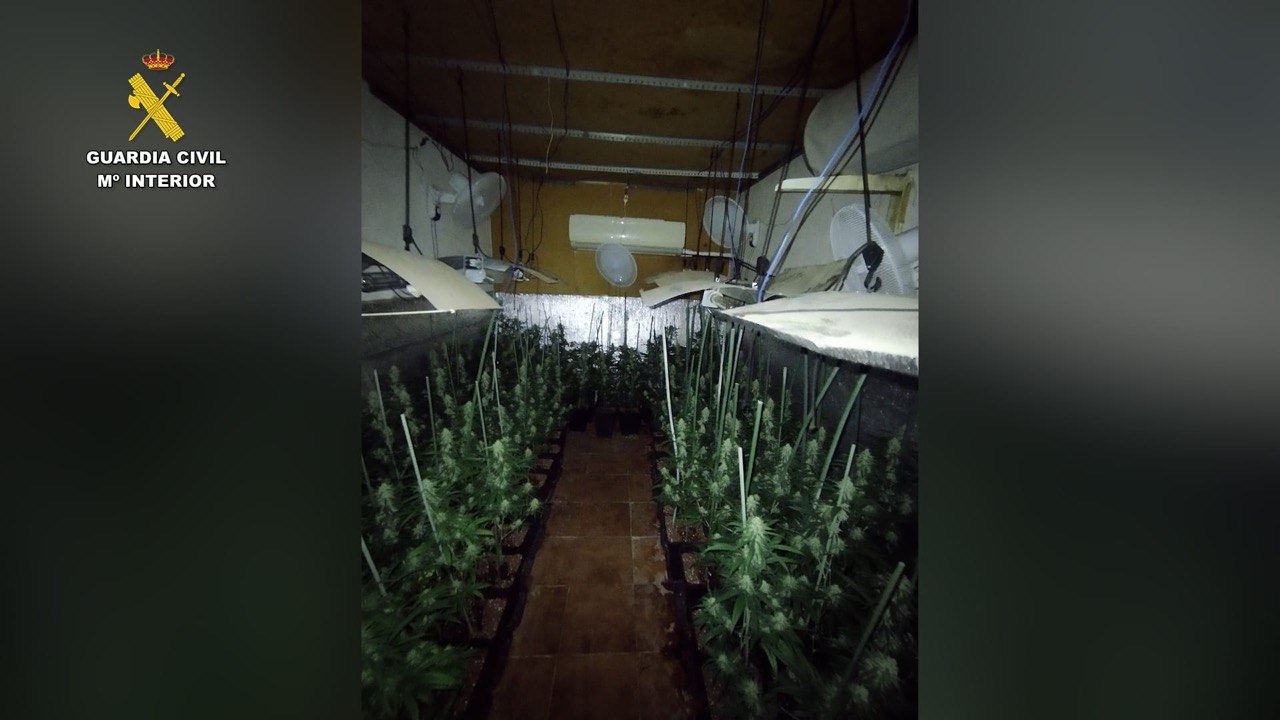 Varias de las estancias de las viviendas habían sido acondicionadas para el cultivo y elaboración de sustancias estupefacientes. En el registro se incautaron unas 1.200 plantas de cannabis sativa en avanzado estado de floración, cogollos secos preparados para su distribución y venta, así como los efectos necesarios para la elaboración y mantenimiento del cultivo.