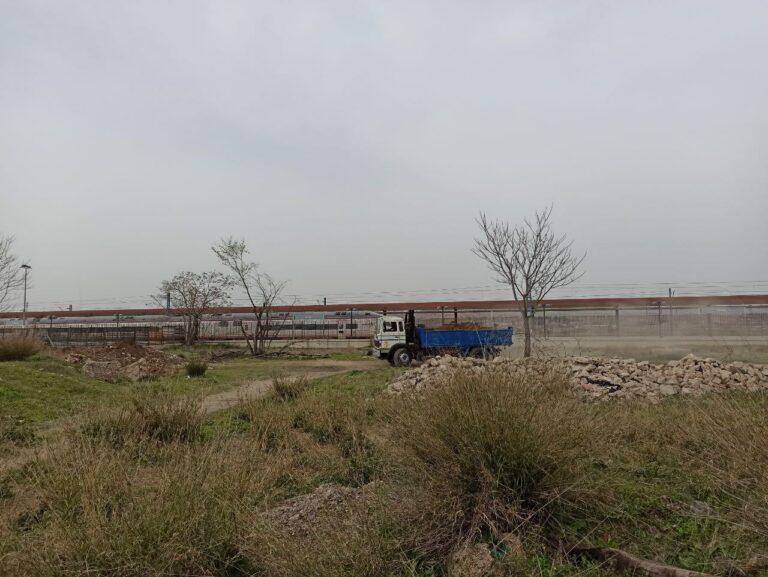 Al menos dos camiones están transportando tierra y ya se ha señalizado en las vallas ubicadas a la entrada de la parcela que la zona de aparcamiento que se habilitó el pasado año por las obras para dar continuidad al bulevar del paseo de la Rosa va a quedar inhabilitada por esta actuación.