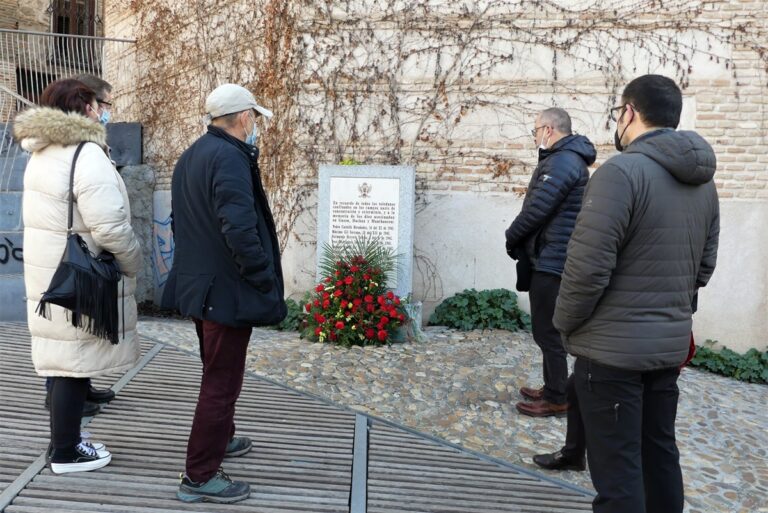 El acto se ha celebrado en el monolito colocado en la Plaza del Sofer del Casco Histórico de Toledo y ha contado con la asistencia del responsable provincial del PCE, Pepe Iniesta, el coordinador provincial de Izquierda Unida en Toledo, Jorge Vega, el diputado provincial de Unidas Izquierda Unida-Podemos, Mario García, y la concejala del Grupo Municipal Izquierda Unida – Podemos de la capital regional, Olga Ávalos.