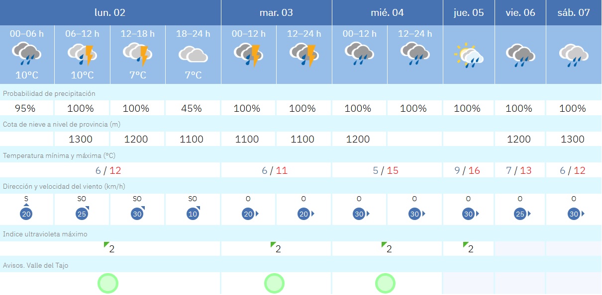 Precipitaciones que se extenderán de oeste a este, débiles o localmente moderadas por la mañana y débiles y dispersas por la tarde cuando, en Toledo y Ciudad Real, podrían ir acompañadas de alguna tormenta ocasional.