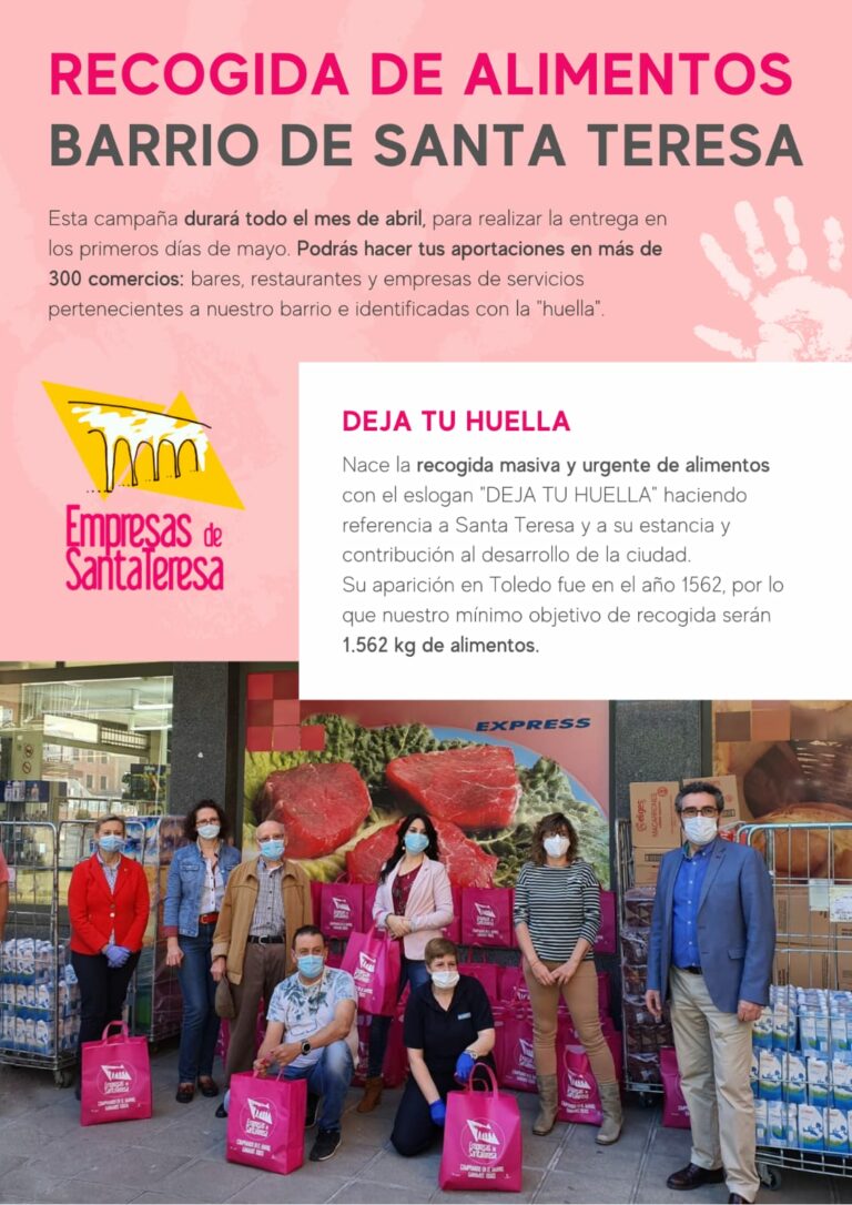 La Asociación de Comercio y Hostelería del Barrio de Santa Teresa se propone recoger para los más necesitados más de 1.562 kilos de alimentos en el mes de abril, “una cifra que queremos superar, por la necesidad perentoria que existen con las familias que están necesitando alimentos en Toledo, pero que tiene su simbolismo -1.562- por conmemorar la fecha en la que Santa Teresa llegó a Toledo”, señala el presidente Carlos Molina.