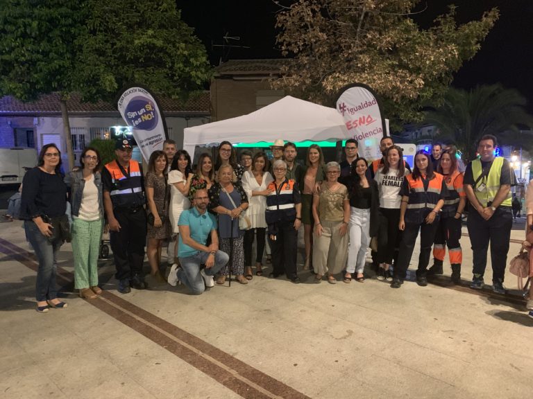 La delegada provincial de Igualdad, Nuria Cogolludo, junto con la alcaldesa de Olías del Rey, Charo Navas, y otras representantes de la Corporación Municipal, acompañaron anoche a jóvenes y adolescentes que, mientras disfrutaban de las celebraciones de las fiestas patronales de la Virgen del Rosario, acudieron al punto de encuentro de esta campaña regional para concienciar y prevenir contra las agresiones sexuales, como la violación en cita, y cualquier otro tipo de comportamiento machista.
