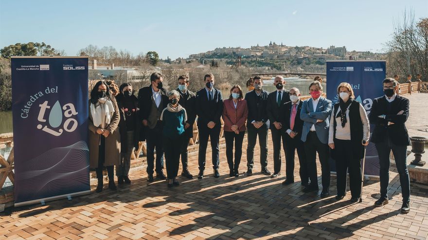 La Cátedra del Tajo, impulsada en conjunto por la UCLM y la Fundación Soliss, se presentó oficialmente en el "mágico lugar" del Cigarral del Ángel. Pero, de fondo, el Tajo cubierto de espumas. Un vídeo inicial muestra el estado de degradación del río, mientras que relata cómo los "mayores recuerdan con nostalgia" los baños en las aguas tan refrescantes, baños que llevan medio siglo sin poder repetirse. "¿Cómo se ha perdido un bien tan preciado?". En la reproducción también se explica que debido al trasvase, el río no tiene un caudal suficiente para arrastrar los sedimentos que permitirían conservar el bosque de ribera. En Toledo, sentenció la narración, el Tajo es una "sucesión de piscinas aguantadas por sus azudes históricos".