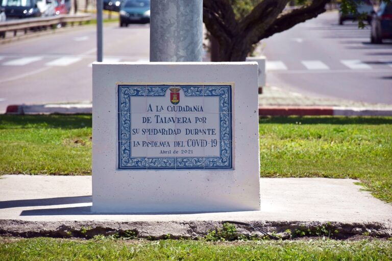 Esta placa de cerámica ya puede verse en la glorieta de la Avenida de Madrid, confluencia con la calle Picasso, a los pies de la bandera de Talavera.