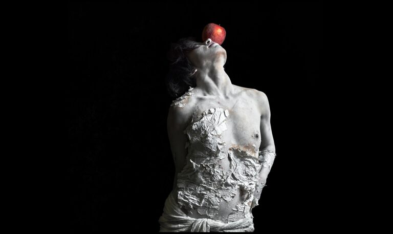 "En la pantalla izquierda una bailarina semicubierta de hojas como escamas es Eva. A la derecha, Adán; interpretado por el maestro Daisuke, uno de los históricos fundadores del movimiento artístico Butoh en Japón. Y en el centro, un péndulo que a modo de Pantocrator marca el ritmo de la vida", explica CORPO en nota de prensa. "La artista divide la obra en cuatro etapas vitales que a su vez corresponden al ciclo anual de los astros".