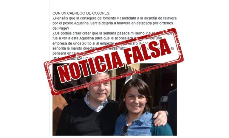 El PSOE de Talavera de la Reina ha denunciado la falsedad de una noticia -concepto conocido actualmente como 'fake news' en inglés- que ha aparecido este lunes en una red social sobre una supuesta reunión mantenida por la secretaria general y consejera de Fomento, Agustina García Élez, en la que no aconsejaba la instalación de una empresa en la ciudad.