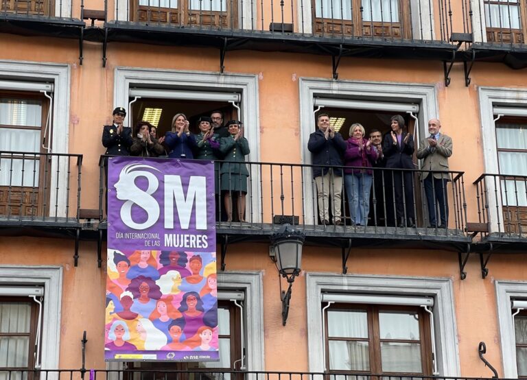 La Delegación del Gobierno en Toledo ha desplegado este lunes, 4 de marzo, una pancarta conmemorativa del 8 de marzo, Día Internacional de las Mujeres.