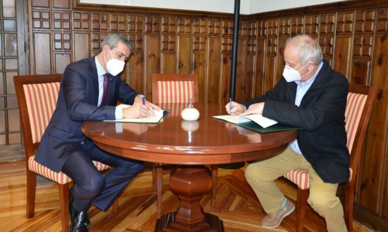 El presidente de la Diputación de Toledo, Álvaro Gutiérrez, y su homólogo en la Asociación Provincial Toledana de Familias Numerosas (ATFAN), José Luís García, han renovado el convenio de colaboración entre las dos entidades para el desarrollo del proyecto denominado “Apoyo a las Familias Numerosas en la Provincia de Toledo”.