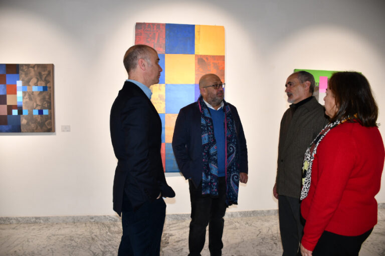 El diputado de Cultura y Educación de la Diputación de Toledo, Tomás Arribas, ha compartido la apertura de la exposición con el artista, interesándose por la geometría y color como únicos protagonistas de las obras expuestas, inspiradas en la retícula para formar imágenes en las nuevas tecnologías, partiendo de unos píxeles representados en diferentes tamaños, formas y colores.