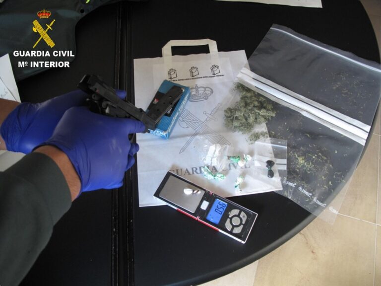 Tras conocer el modus operandi del clan familiar y la plena identificación de sus integrantes, el pasado 6 de febrero se llevaron a cabo dos registros, uno en la citada vivienda y otro en una pequeña nave de la localidad. Entre ambos, se consiguieron intervenir 6 gramos de cocaína, 12 gramos de marihuana, una báscula de precisión, distinto material para confeccionar las dosis y hasta una pistola de fogueo municionada con cartuchos.