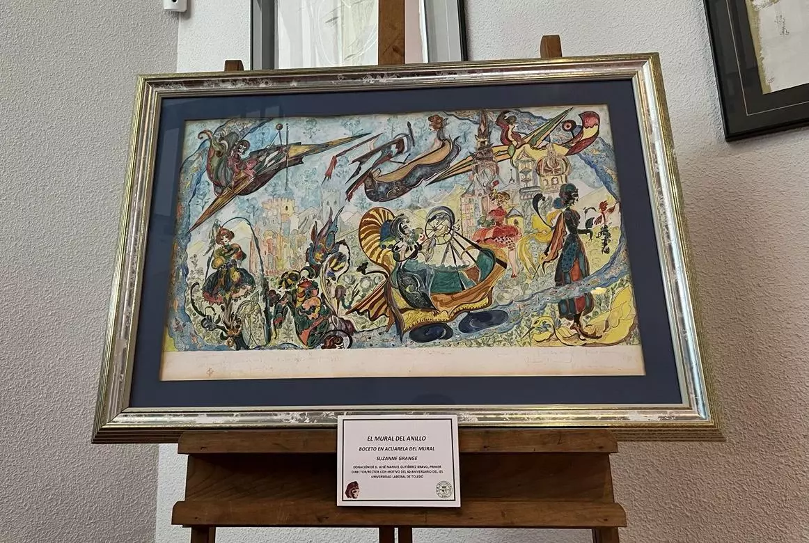 La Universidad Laboral de Toledo inauguró este martes 18 de marzo la exposición dedicada a Suzanne Grange y, por ende, a su marido y colaborador Raymond Edanz, creadores del 'Mural del Anillo'. En esta exhibición que se puede visitar en el Salón de actos del instituto toledano van a poder conocer de cerca los primeros bocetos elaborados por los artistas para crear la obra de azulejería que puede verse igualmente a tan solo unos metros en la cafetería del centro educativo.