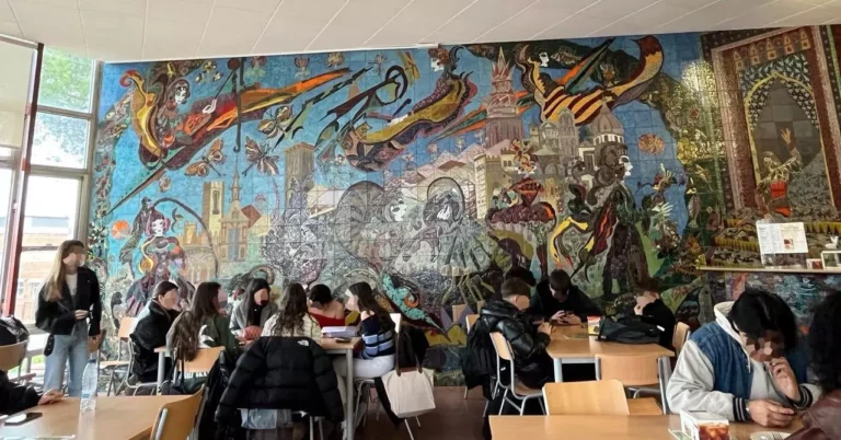 Toledo tiene joyas patrimoniales que se pueden ver a kilómetros de distancia y otras que permanecen 'ocultas' en lugares como la cafetería de un instituto. Es el caso del 'mural del anillo', un conjunto artístico que se ubica en el IES Universidad Laboral y que cumple casi cincuenta años desde su creación.