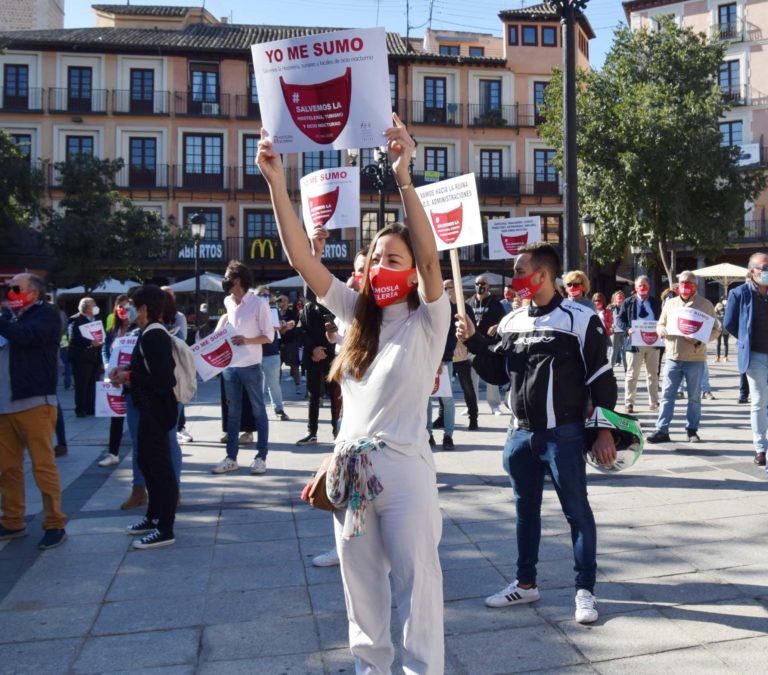 En torno a 400 hosteleros se han concentrado este lunse en la Plaza de Zocodover de Toledo para pedir que “no se deje caer a un sector” que sólo en la provincia aglutina a 6.737 establecimientos de hostelería y supone "el 24% del PIB (Producto Interior Bruto) de la ciudad de Toledo y el 4,6% de la región".