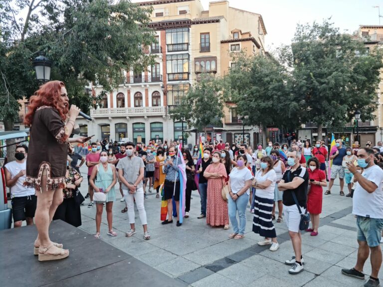 "Desde ciertos sectores de la sociedad intentan invisibilizarnos y destruirnos con sus agresiones tanto verbales como físicas, por suerte esos sectores son cada vez más minoritarios aunque, por desgracia están ganando fuerza en las instituciones. Desde aquí le pedimos a nuestros gobernantes que no consientan esos ataques y sean rotundos a la hora de condenarlos”, ha dicho 'La Prohíbida' en el acto celebrado en Zocodover.