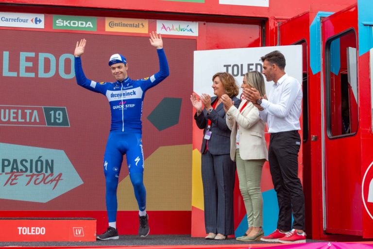 Desde principios de esta semana se preparaban los paraguas en Toledo para recibir a la Vuelta Ciclista a España en su antepenúltima etapa, en la que el francés Rémi Cavagna (Deceuninck-Quik-Step) alcanzó primero la meta que marcaba el exterior del Alcázar tras un corto pero exigente repecho al que la lluvia respetó su final. Un triunfo que no estuvo exento del sufrimiento con el que defendió la ventaja de minuto y medio que llegó a tener en solitario el ciclista y que al final se redujo a solo cinco segundos sobre sus perseguidores, entre ellos Alejandro Valverde.